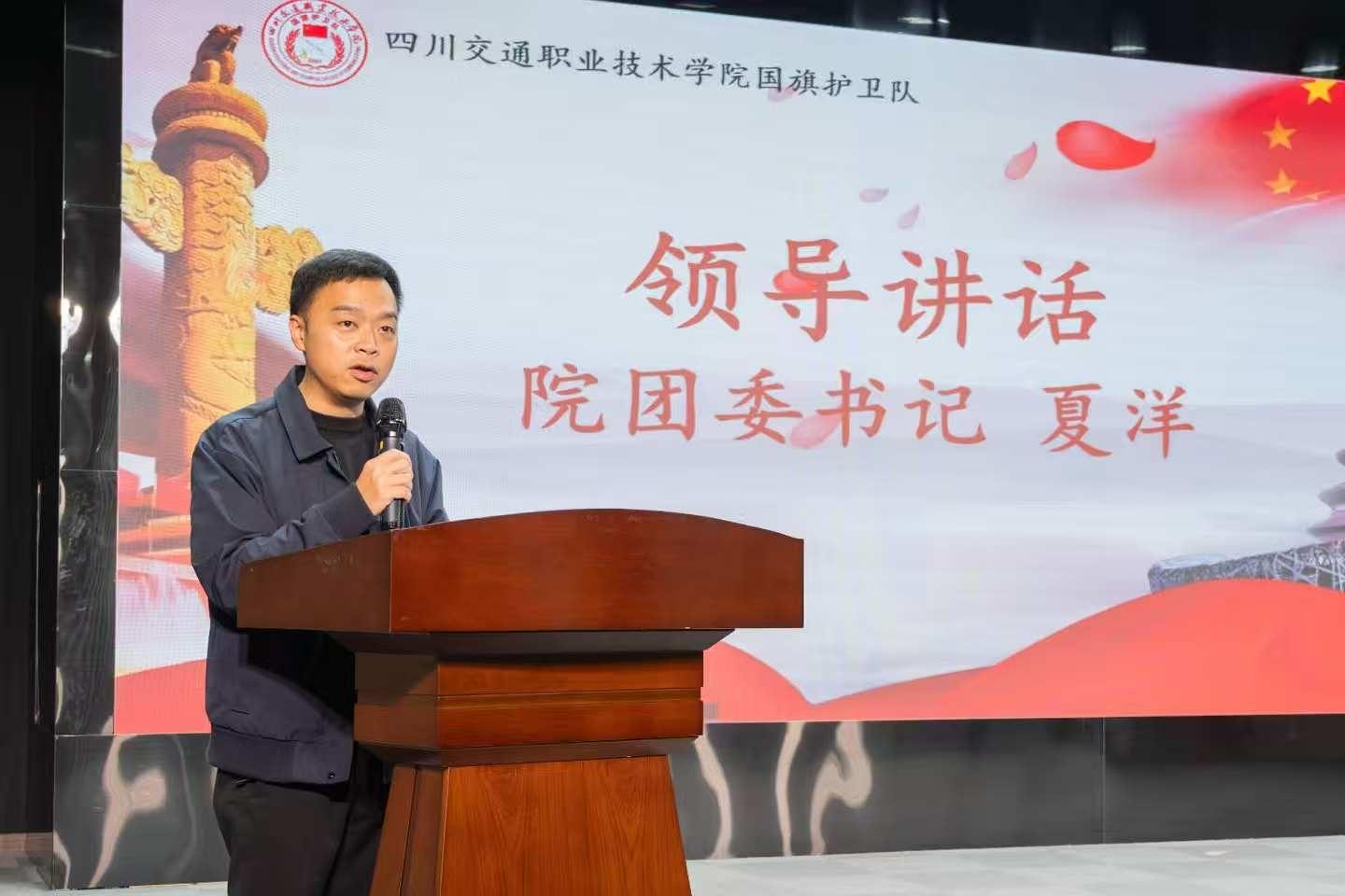 仪式最后,学院院团委书记夏洋发表了讲话。夏洋书记高度肯定了第二十三届国旗护卫队的付出与贡献,并对新一届队员表示热烈祝贺。