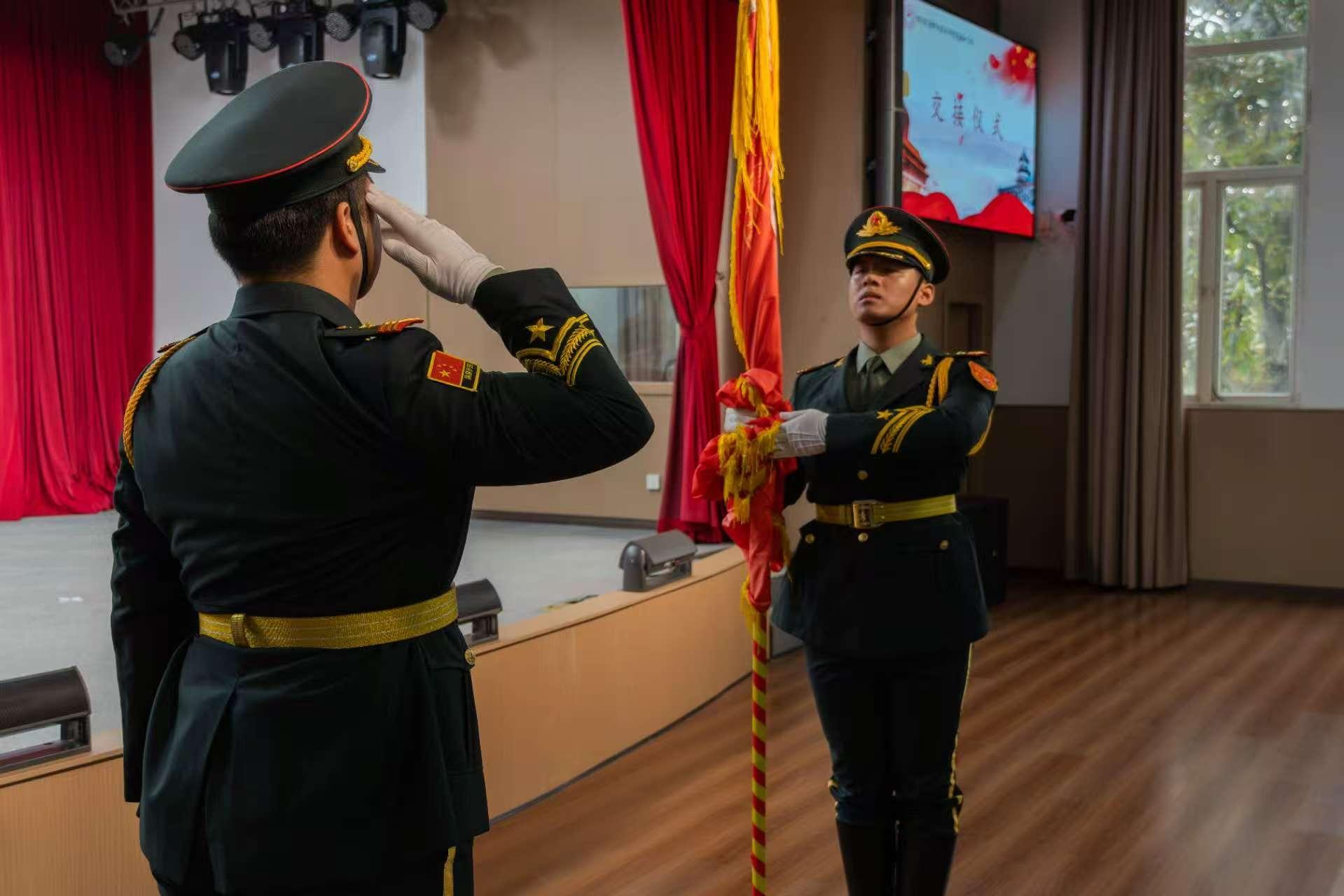 仪式在雄壮的国歌声中正式拉开帷幕。全体成员肃立,注视着鲜艳的五星红旗,高唱中华人民共和国国歌。